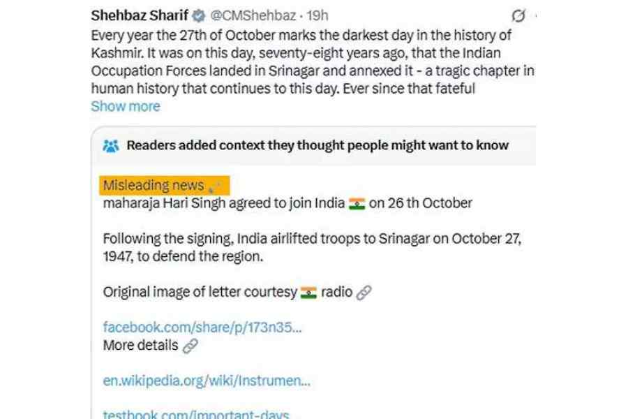 इस पोस्ट पर एक्स कम्युनिटी नोट्स ने फैक्ट चेक कर दिया। इसमें लिखा गया, "ये भ्रामक खबर है। महाराजा हरि सिंह 26 अक्टूबर 1947 को भारत में शामिल होने के लिए तैयार थे। इस समझौते पर हस्ताक्षर के बाद भारत ने क्षेत्र की रक्षा के लिए 27 अक्टूबर 1947 को श्रीनगर में सेना भेजी थी।"