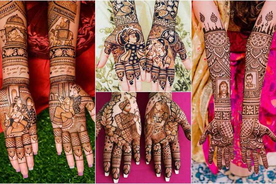 अगर आप अपनी मेहंदी अपने पति को डेडिकेट करना चाहती हैं, तो यह डिज़ाइन आपके लिए आइडियल हो सकता है। इस मेहंदी में, आपकी एक हथेली पर आपके होने वाले पति की तस्वीर होगी। दूसरी हथेली पर मंडप में बैठे जोड़े की झलक दिखाएँ। अपनी कलाई पर "सदा सौभाग्यवती भव" लिखवाएँ। इससे आपकी मेहंदी की खूबसूरती और बढ़ जाएगी।